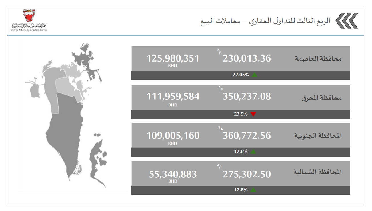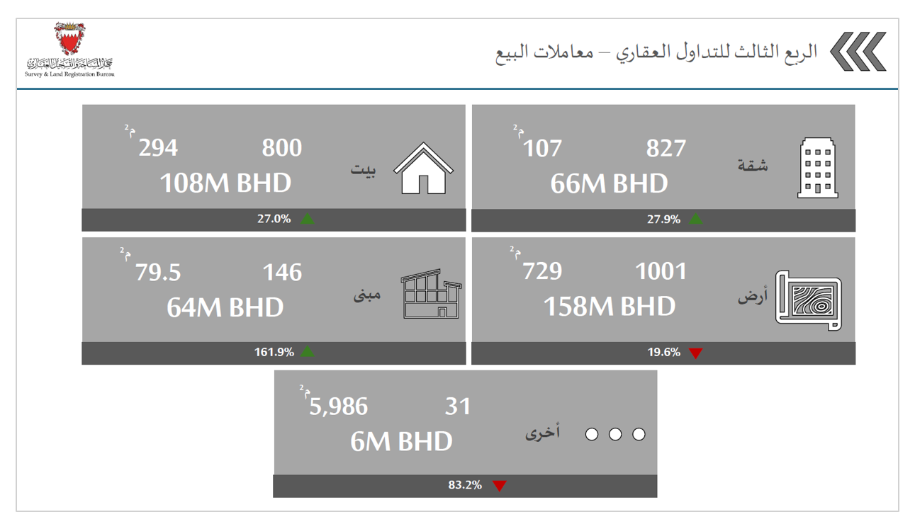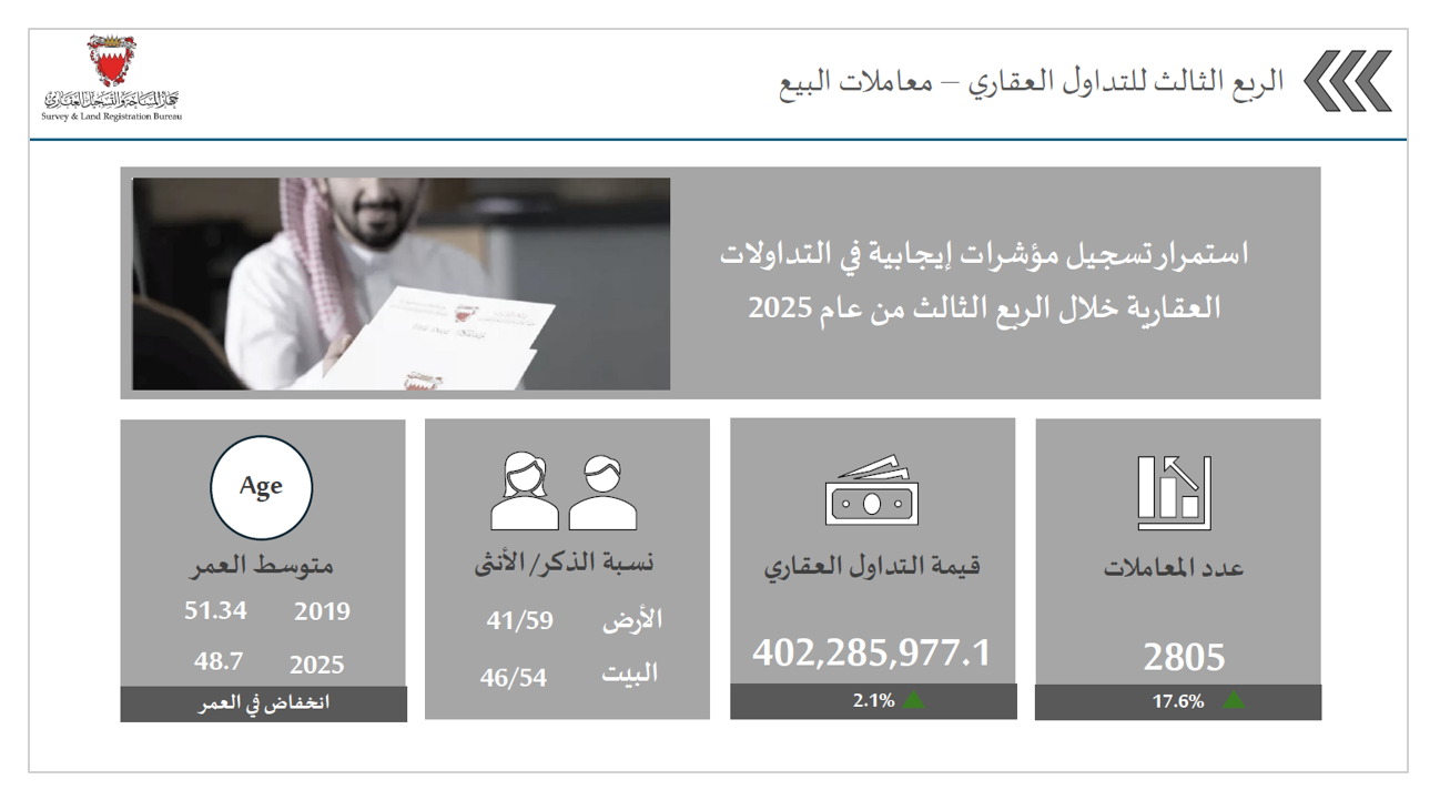 مقارنة إجمالي التداول العقاري لمملكة البحرين للربع الثالث بسنة 2025 و 2024